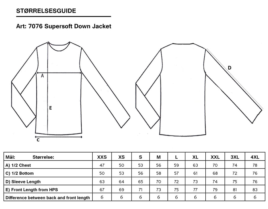Myk og fyldig dunjakke i samme kvalitet som art. 7077, men med mye mer dun. Lett og komfortabel å ha på kroppen.